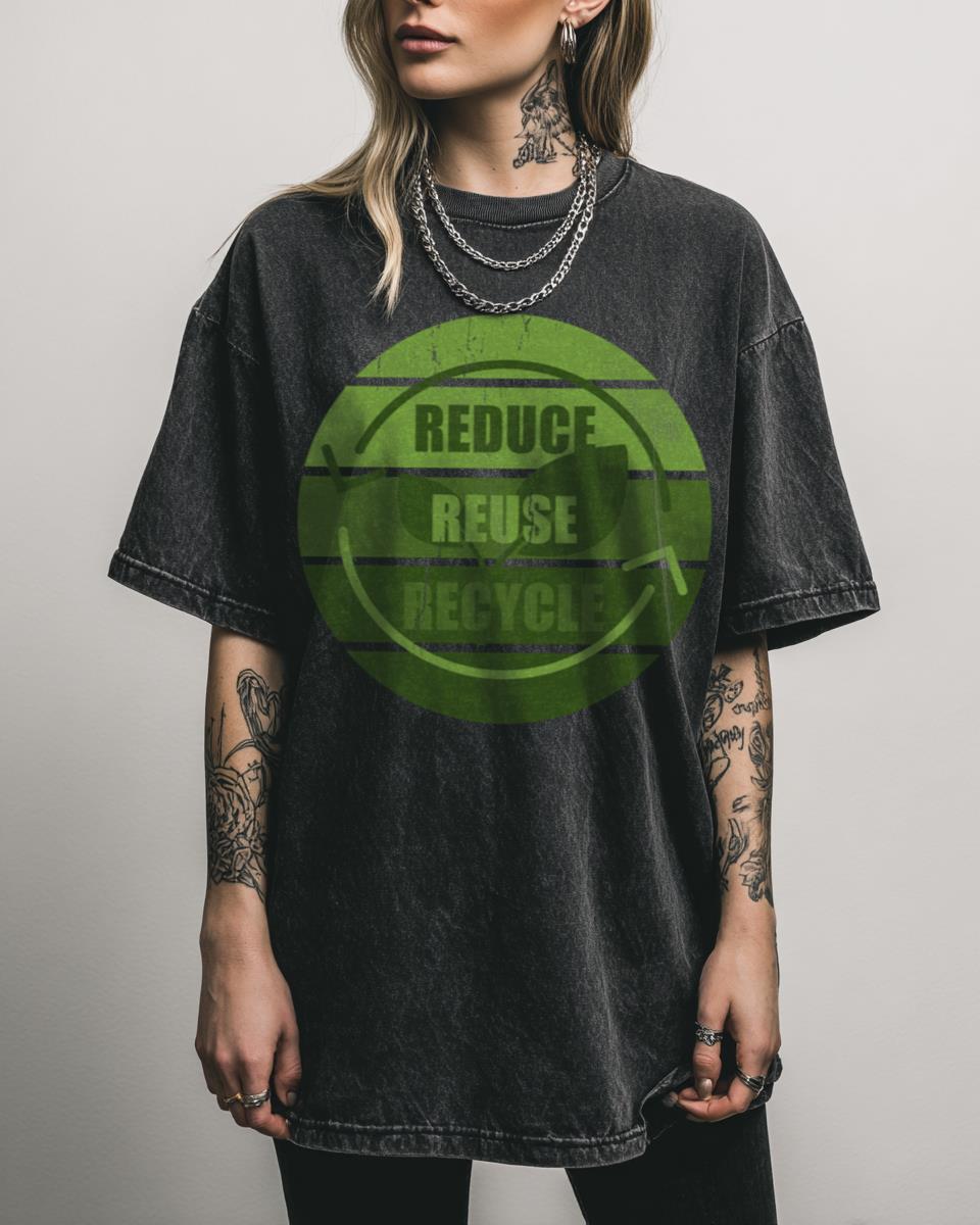 Ready to Rock Sustainable Fashion with a “Reduce, Reuse, Recycle” Tee? Embrace eco-conscious style with this **Sustainable Fashion T-shirt**, featuring the impactful message “Reduce, Reuse, Recycle, and Rock This Look.” This graphic tee, with its vibrant print on a unique black acidwash, is perfect for those dedicated to environmental protection, sustainable living, and making a…