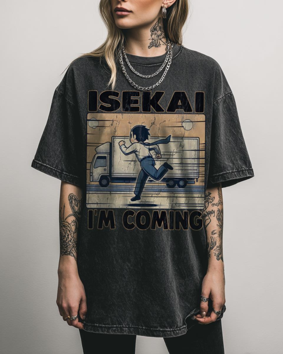 Ready for your next adventure in another world? Embrace the humor of the Isekai genre with this funny “Isekai, I’m coming!” T-shirt. Featuring a retro halftone style and a classic truck motif, it’s a playful nod to common Isekai tropes, perfect for anime and manga fans with a sense of humor. Why You’ll Love This…