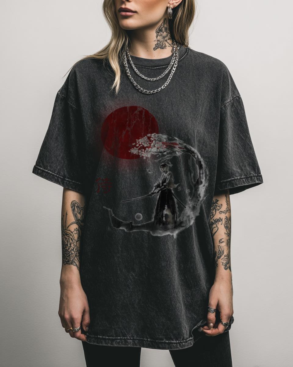 Are you inspired by the path of the sword and the legendary Miyamoto Musashi? This profound ‘Invincible Under the Sun – Vagabond’ graphic tee is a tribute to the epic manga series ‘Vagabond’ and its protagonist, Miyamoto Musashi. Featuring powerful Kanji script and a design that evokes the samurai’s journey, it’s a must-have for fans…