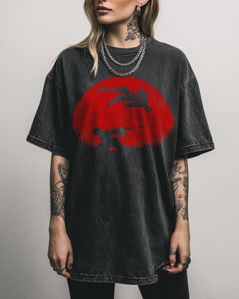 Are you a fan of the legendary Battousai and the epic world of Rurouni Kenshin? Channel the spirit of the wandering samurai with this striking ‘Red Moon Mitsurugi’ T-shirt! Featuring Kenshin Himura in a powerful silhouette against a dramatic red moon, this design pays homage to the iconic Rurouni Kenshin anime and manga. It’s a…