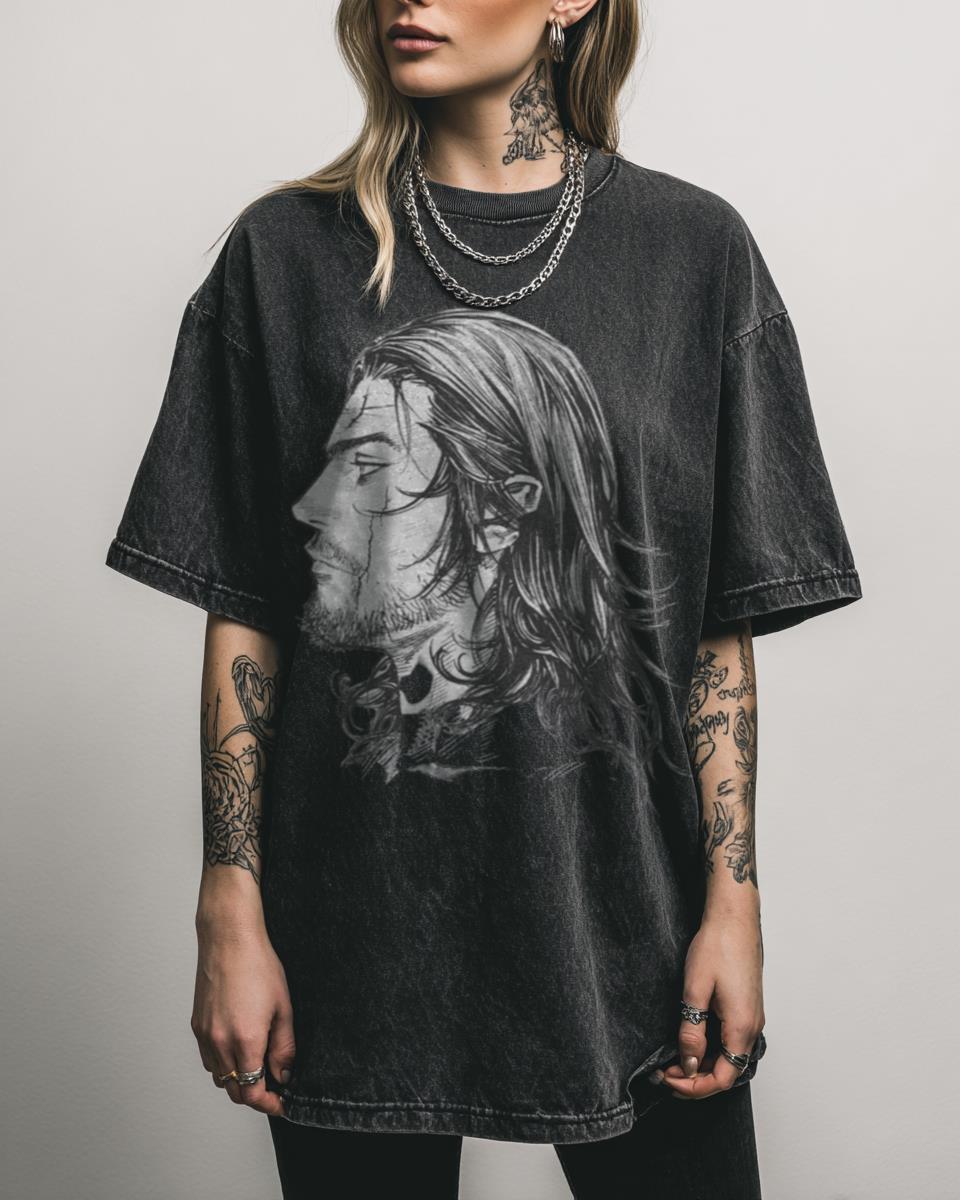 Step back into the golden era of 90s anime with the legendary Battousai! This T-shirt features a dynamic graphic design of Kenshin Himura, the wandering samurai from the iconic 90s anime and manga series ‘Rurouni Kenshin’ (Samurai X). Capturing his stoic determination and legendary sword skills, this design is perfect for fans of classic samurai…