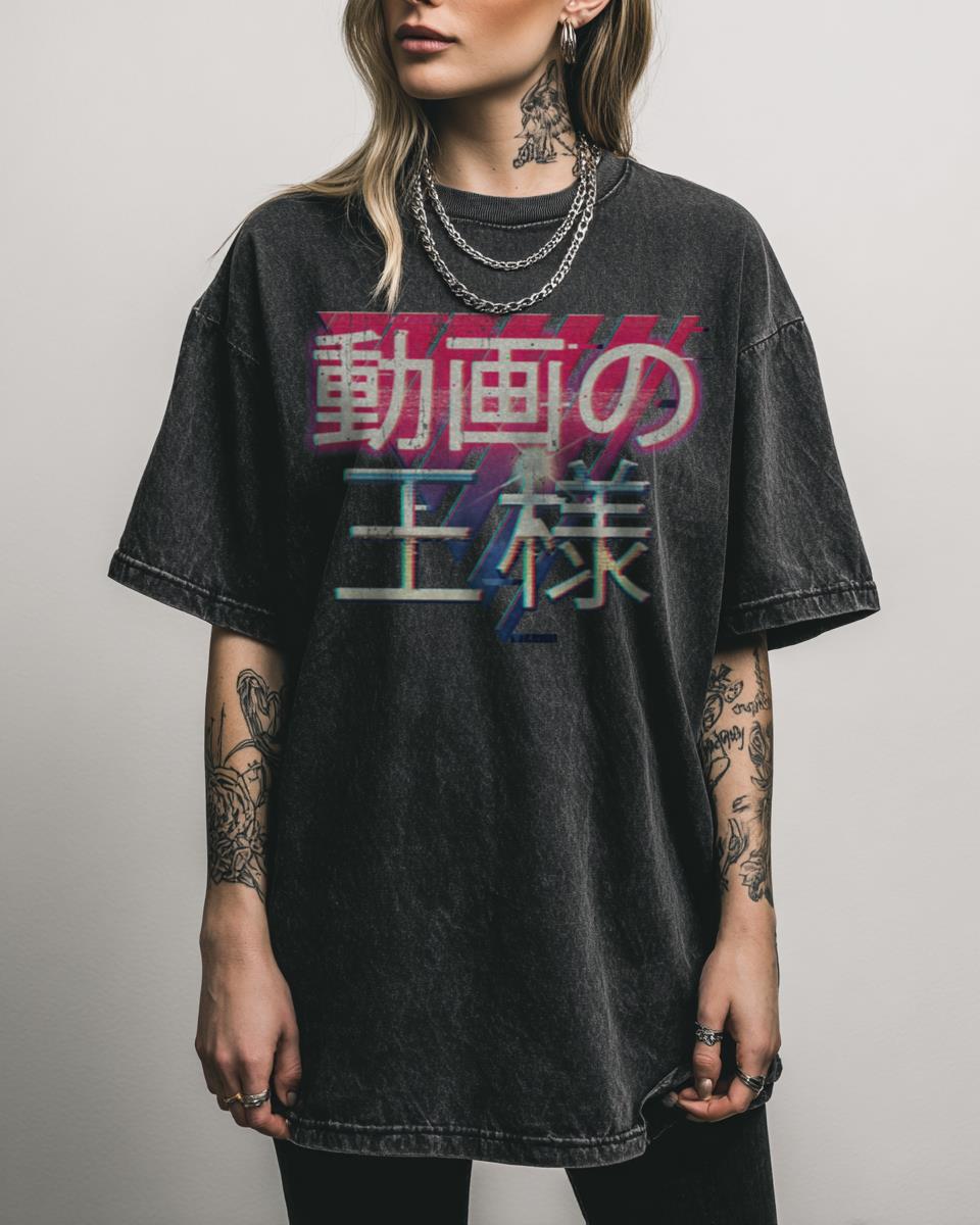 Step back into the neon glow of retro Japanese aesthetics? Immerse yourself in a vibrant, nostalgic world with this ‘Video King Japanese’ graphic T-shirt. Featuring glitch art inspired by 80s and 90s video culture and vapourwave aesthetics, this design is perfect for fans of retro gaming, cyberpunk, and unique visual styles. Why You’ll Love This…
