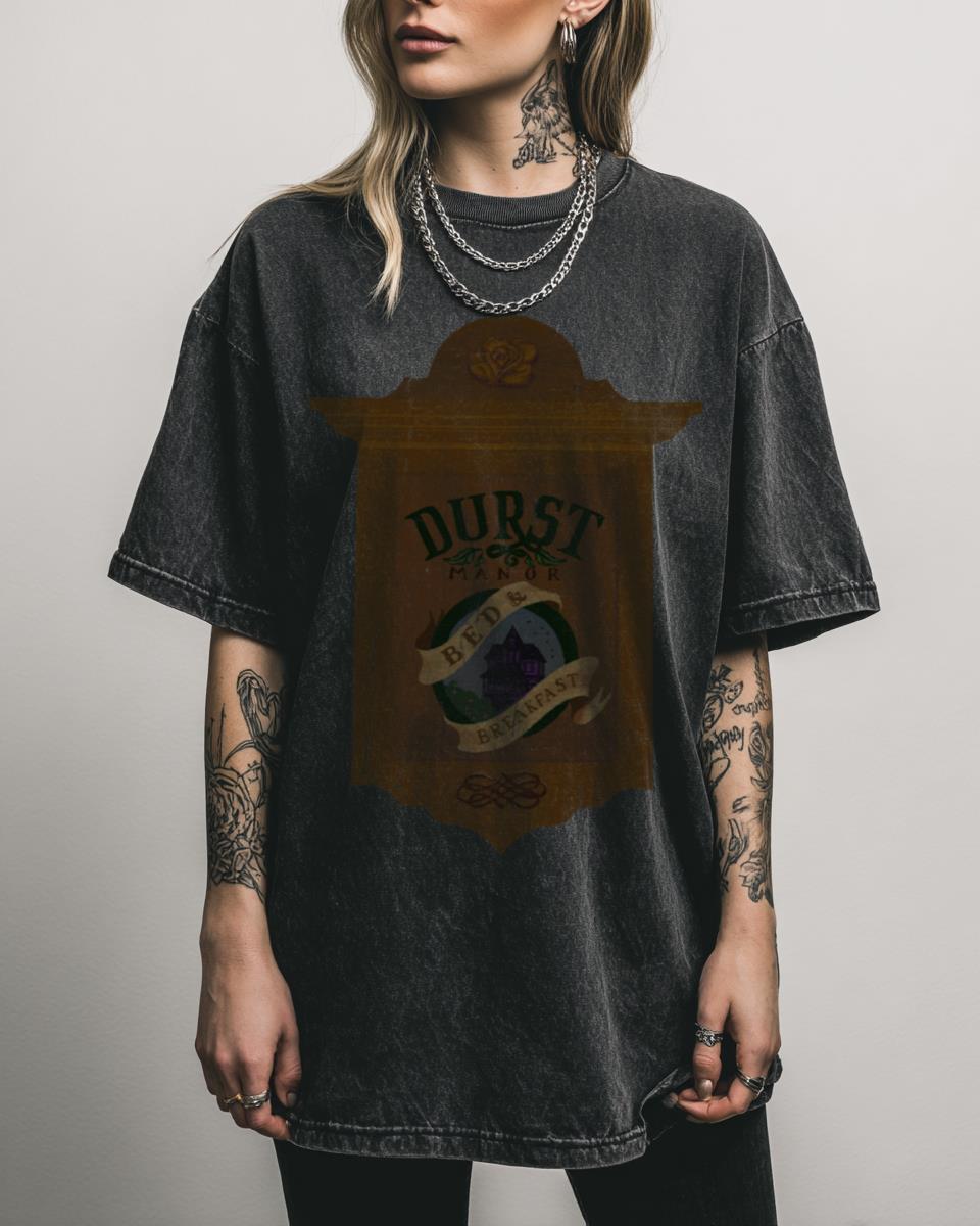 Are you brave enough to spend a night at the infamous Durst Manor? Commemorate your (un)forgettable journey through Barovia with this ‘Durst Manor B&B’ tee! This design is a clever, spooky nod to the iconic starting location of the Dungeons & Dragons “Curse of Strahd” campaign. It’s the perfect apparel for Dungeon Masters and players…
