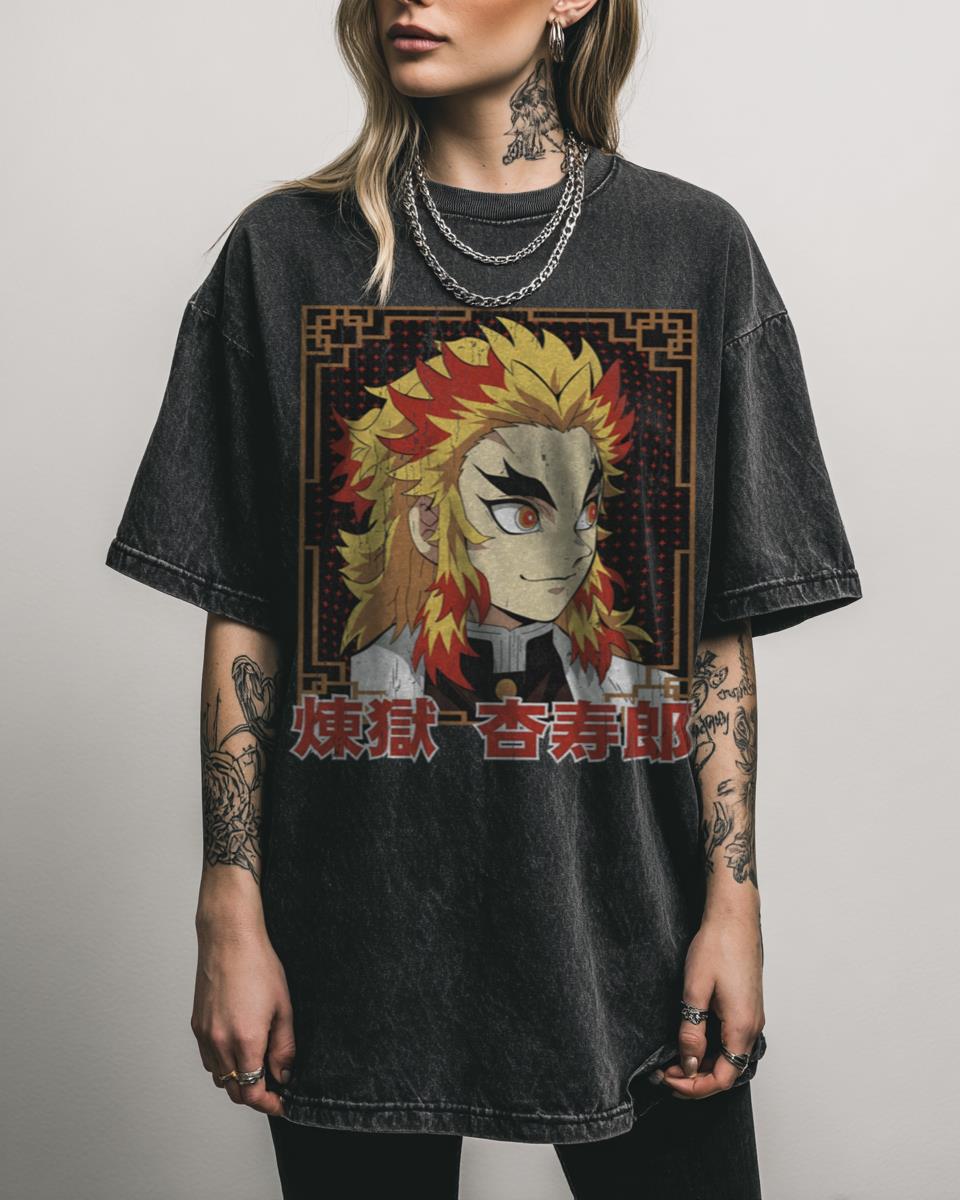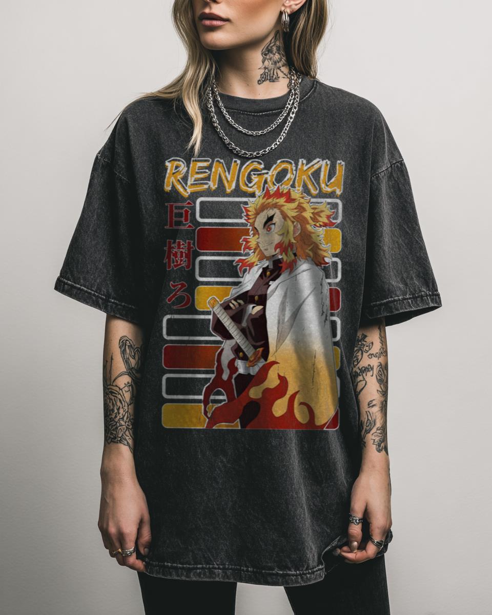 Are you inspired by the unwavering resolve and fiery spirit of the Flame Hashira, Kyojuro Rengoku? Honor the legendary ‘Flame Hashira Rengoku’ with this powerful Demon Slayer design. This anime and manga-inspired tee showcases Kyojuro Rengoku’s iconic fire breathing techniques and his heroic stance against demons like Akaza, making it a must-have for Kimetsu No…