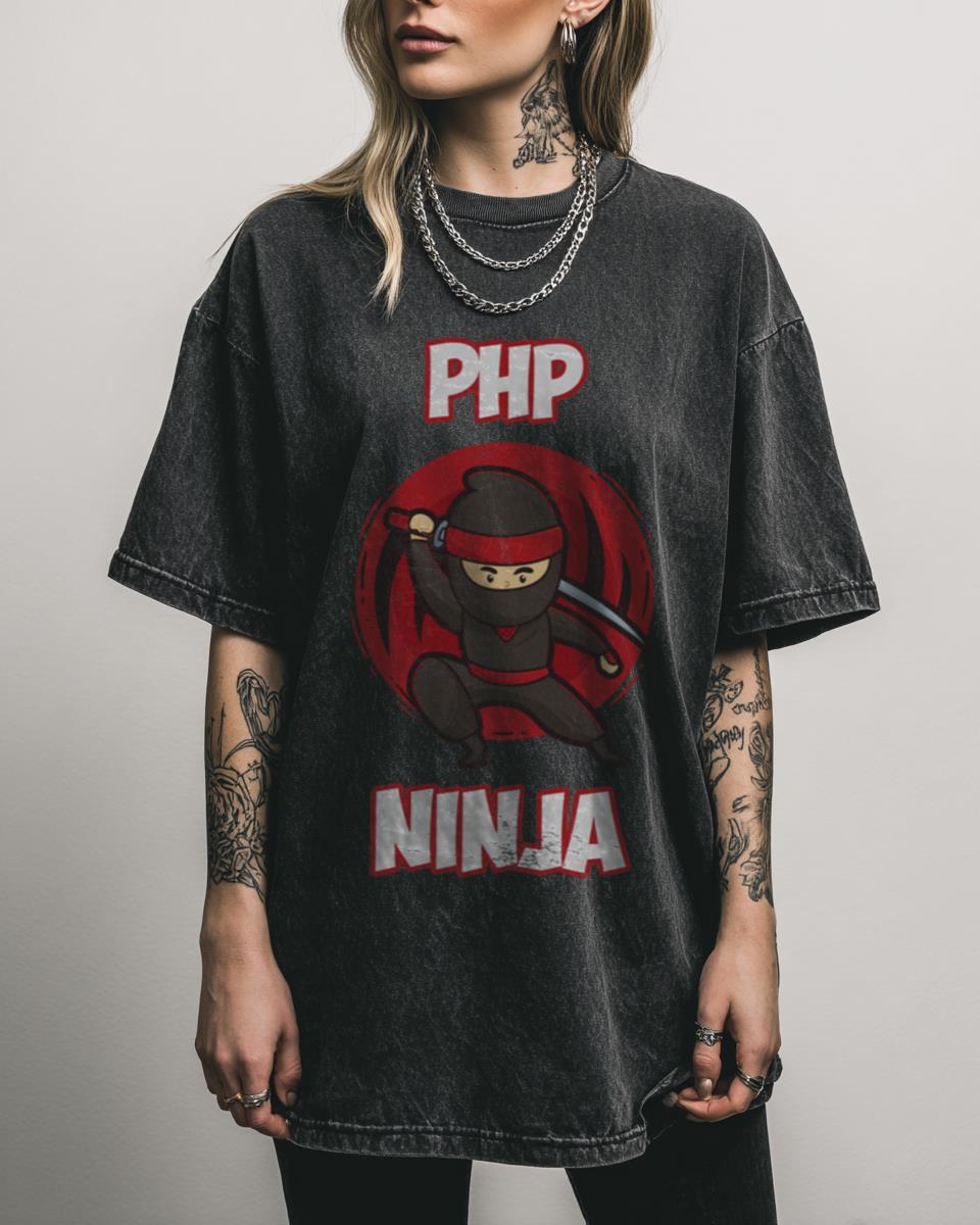 Are You a Stealthy PHP Programmer Ninja? This Tee is For You! Show off your coding prowess with this fun PHP Programmer Ninja graphic tee. Perfect for developers, coders, and anyone fluent in PHP, this black acidwash shirt combines tech humor with a cool, understated style, ideal for the office or casual wear. Why This…