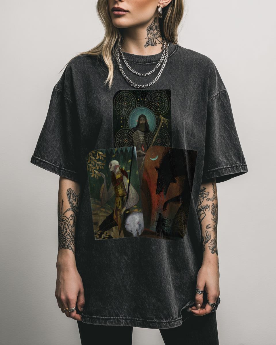 Are you deeply entangled in the lore and romance of Dragon Age Inquisition? Embrace the mystique of the Dread Wolf with this ‘Solas Tarot Card Trilogy’ T-shirt, inspired by Dragon Age Inquisition. This design captures the intricate artistry of the game’s tarot cards, perfect for fans of Solas and the complex world of Thedas. Why…