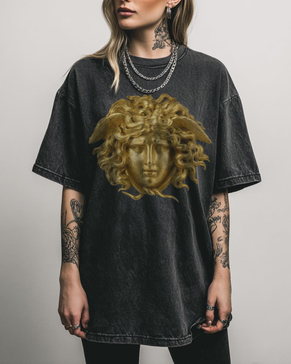 Are you captivated by ancient Greek mythology and timeless, elegant art? Embrace the legendary power and beauty of Medusa with this ‘Medusa Gold’ graphic. This classic design features the iconic Gorgon’s head with a stunning halftone effect and golden accents, blending mythology with modern fashion. It’s a beautiful, trendy, and timeless piece for those who…