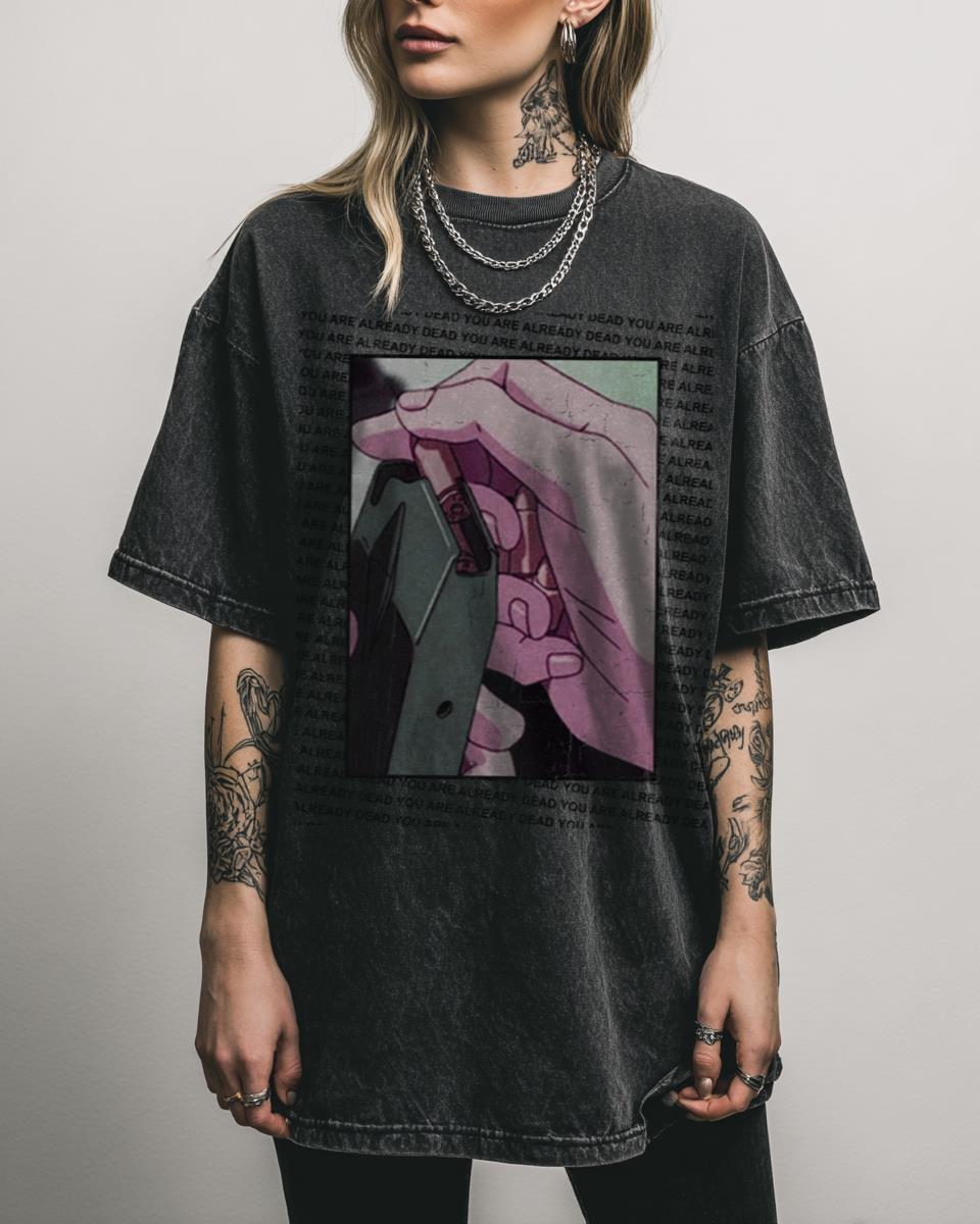 Embrace the cool, mysterious vibe of vaporwave and iconic anime quotes? Channel your inner aesthetic with this ‘YOU ARE ALREADY DEAD’ T-shirt, a classic phrase given a modern vaporwave twist. Inspired by Japanese anime and Tokyo’s unique style, this simple yet striking design is perfect for fans who appreciate minimalist aesthetics and powerful, memorable quotes….