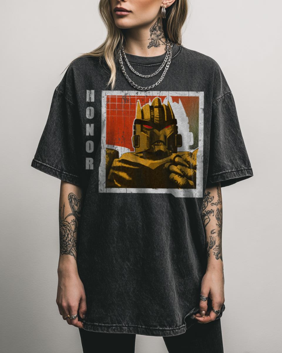 Are you ready to roll out with the heroic Maximals from Beast Wars? Command respect with this ‘HONOR-DINOBOT’ design! This graphic features the iconic Dinobot from the Transformers Beast Wars series, embodying his warrior spirit and honor. Perfect for fans of classic Transformers, Beast Wars enthusiasts, and anyone who loves powerful robot anime and retro…