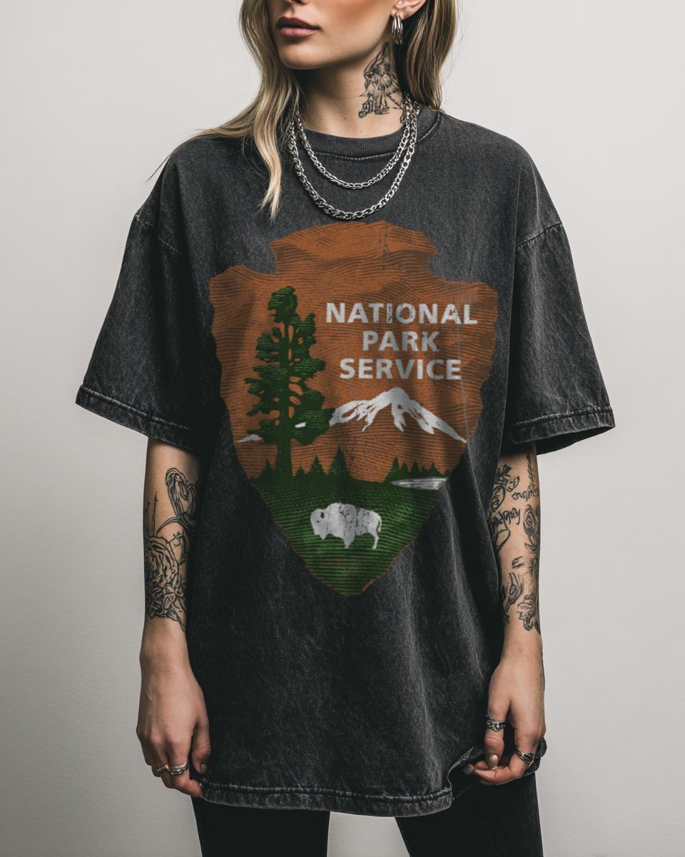 Do you feel the call of the wild and the majestic beauty of America’s national parks? Celebrate the breathtaking landscapes and conservation efforts of the National Park Service with this retro-inspired design. Featuring iconic mountains, lush forests, and towering trees, this graphic embodies the spirit of outdoor adventure and appreciation for America’s natural wonders. Perfect…
