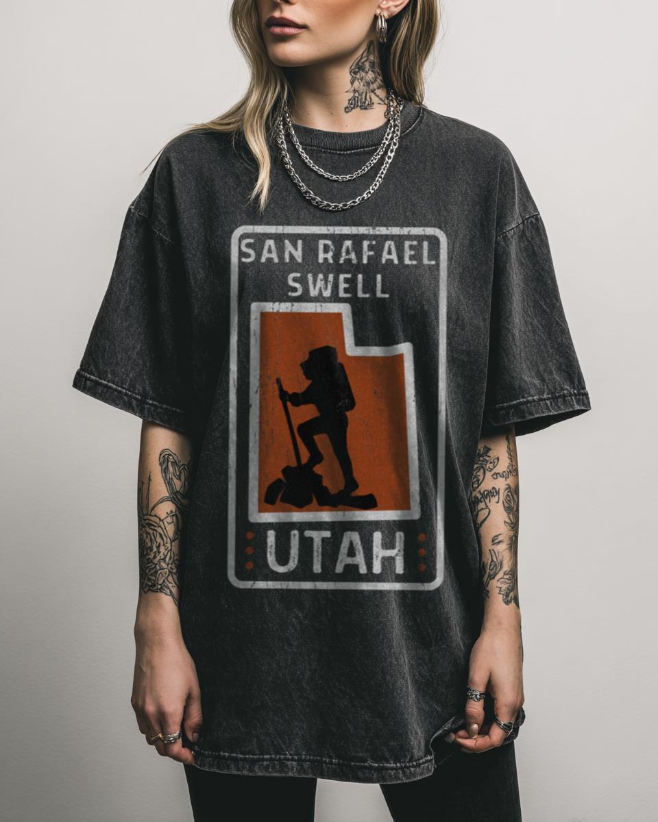 Explore the Wilderness with This San Rafael Swell T-Shirt? Embark on your next adventure with this rugged San Rafael Swell T-Shirt, featuring a captivating Utah Desert Hiking graphic. This fan-created design pays homage to the stunning landscapes of Utah’s San Rafael Swell, presented on a stylish black acid wash tee perfect for outdoor enthusiasts and…