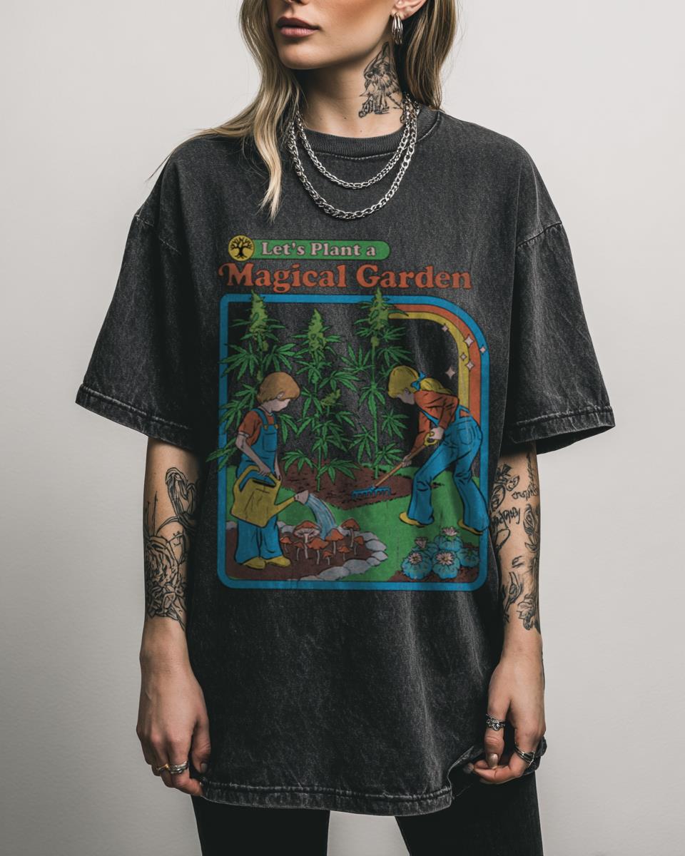 What Makes This Magical Garden Psychedelic T-Shirt So Fun? Cultivate some retro vibes with this Magical Garden Psychedelic T-Shirt, a humorous and nostalgic design featuring enchanting mushrooms. This black acidwash graphic tee captures the whimsical and trippy aesthetic of 70s and 80s counter-culture, perfect for those who appreciate vintage humor and unique botanical art. Key…