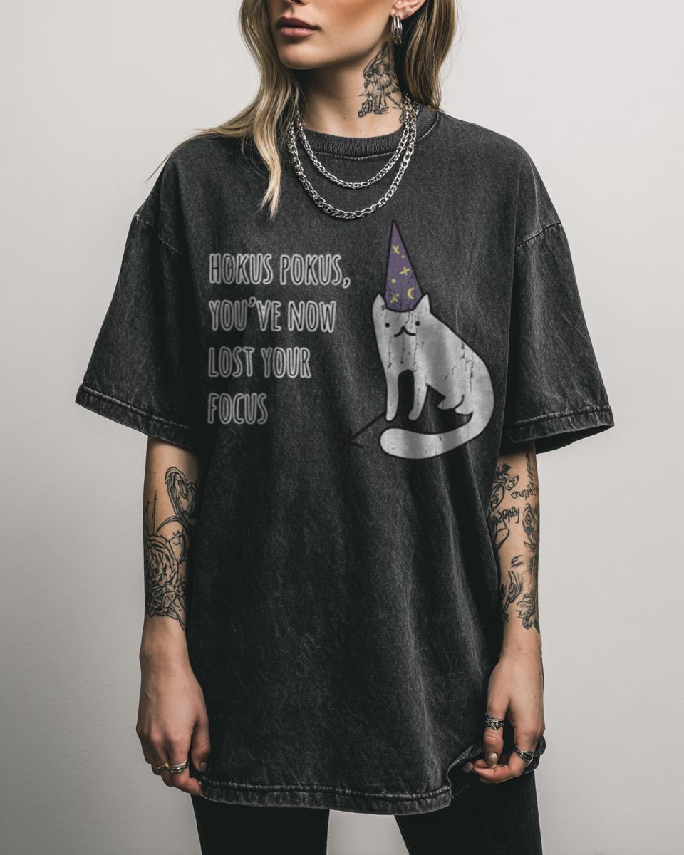 Feeling a bit distracted or just love a quirky, funny design? Inject some humor into your day with this ‘Hocus Pocus You’ve Now Lost Your Focus’ graphic tee. Featuring a cool, thoughtful frog with a laptop in an anime-inspired style, it’s perfect for hipsters and anyone with a playful sense of humor. Why You’ll Love…