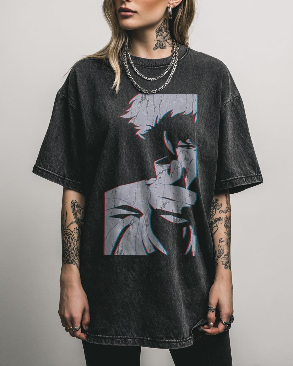 Do you march to the beat of your own drum, just like the crew of the Bebop? Get cool with ‘The Real Folk Blues’ T-shirt, an abstract anime art design inspired by the legendary ‘Cowboy Bebop’ series and its iconic theme song. This graphic, created by artist Bryce-Designs, features a trippy, stencil-like style reminiscent of…