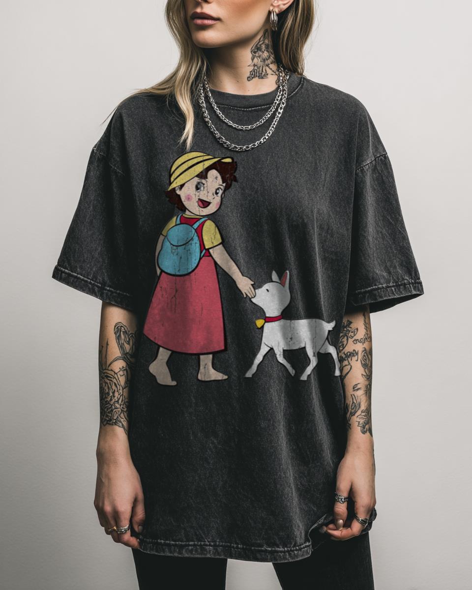 Relive the heartwarming adventures of your favorite Swiss mountain girl! This charming design features Heidi and her beloved little goat, capturing a nostalgic scene from the classic anime and cartoon TV series. It evokes the innocence and beauty of the Swiss Alps, bringing a touch of childhood magic to your wardrobe. Why You’ll Love This:…