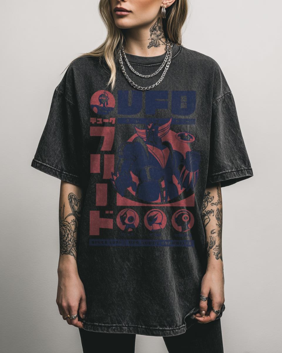 Discover the UFO Robot Grendizer 80s Anime T-Shirt? Relive the golden age of giant robots with this retro UFO Robot Grendizer T-shirt. Featuring a fan-created design inspired by the classic 80s anime, this black acid wash tee is perfect for fans of Go Nagai and vintage Japanese cartoons. Why This Grendizer Tee is a Retro…