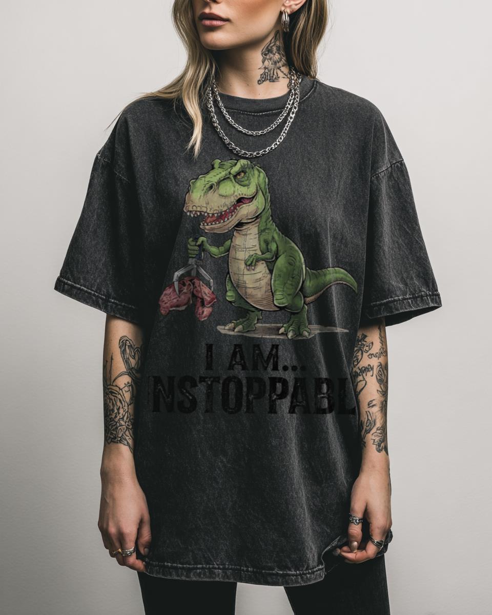 Feel unstoppable, even with tiny arms, just like a T-Rex! This hilarious ‘I Am Unstoppable T-Rex’ design features a determined, comical cartoon dinosaur, playfully overcoming its small arm challenge. It’s a witty and unique take on prehistoric humor, perfect for anyone who loves dinosaurs and a good laugh. Why You’ll Love This: Amusing printed graphics…
