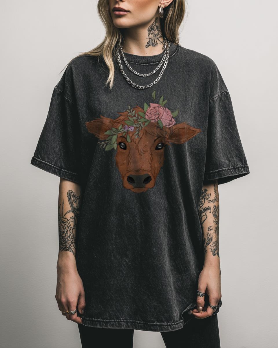 Searching for a charming and whimsical farm animal design? This delightful graphic tee features a sweet red cow adorned with a vibrant flower crown, bringing a touch of rustic charm and playful femininity to your wardrobe. It’s a perfect choice for cow enthusiasts, farm animal lovers, or anyone who enjoys cute and unique nature-inspired apparel….