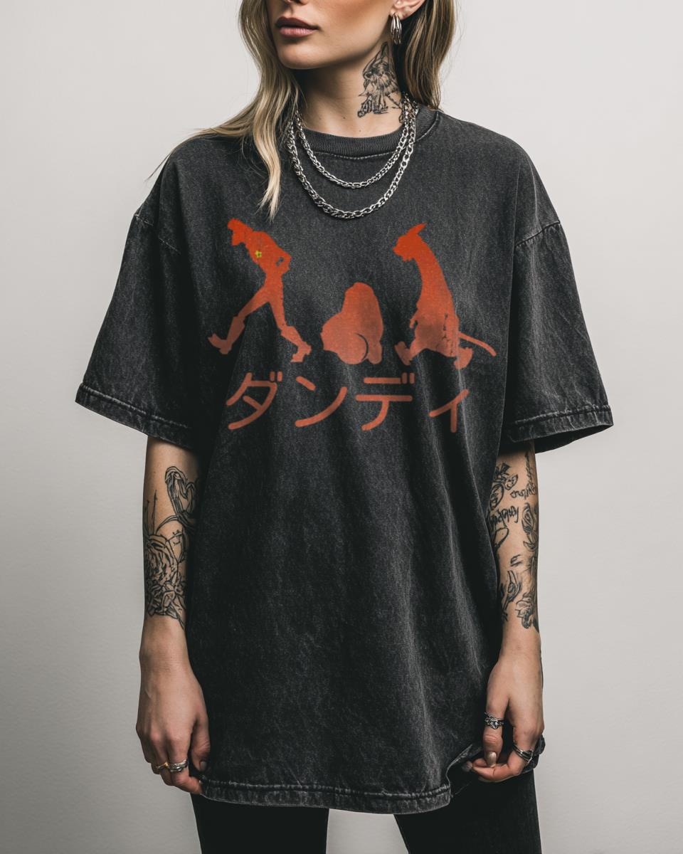 Are you a dandy guy in space? Cruise the cosmos in style with this “Space Dandy Silhouette” graphic tee! Featuring the titular dandy in a sleek, orange-accented silhouette, this design is perfect for fans of the groovy sci-fi anime. It’s a vibrant and stylish tribute to the bounty hunter who’s always on the lookout for…