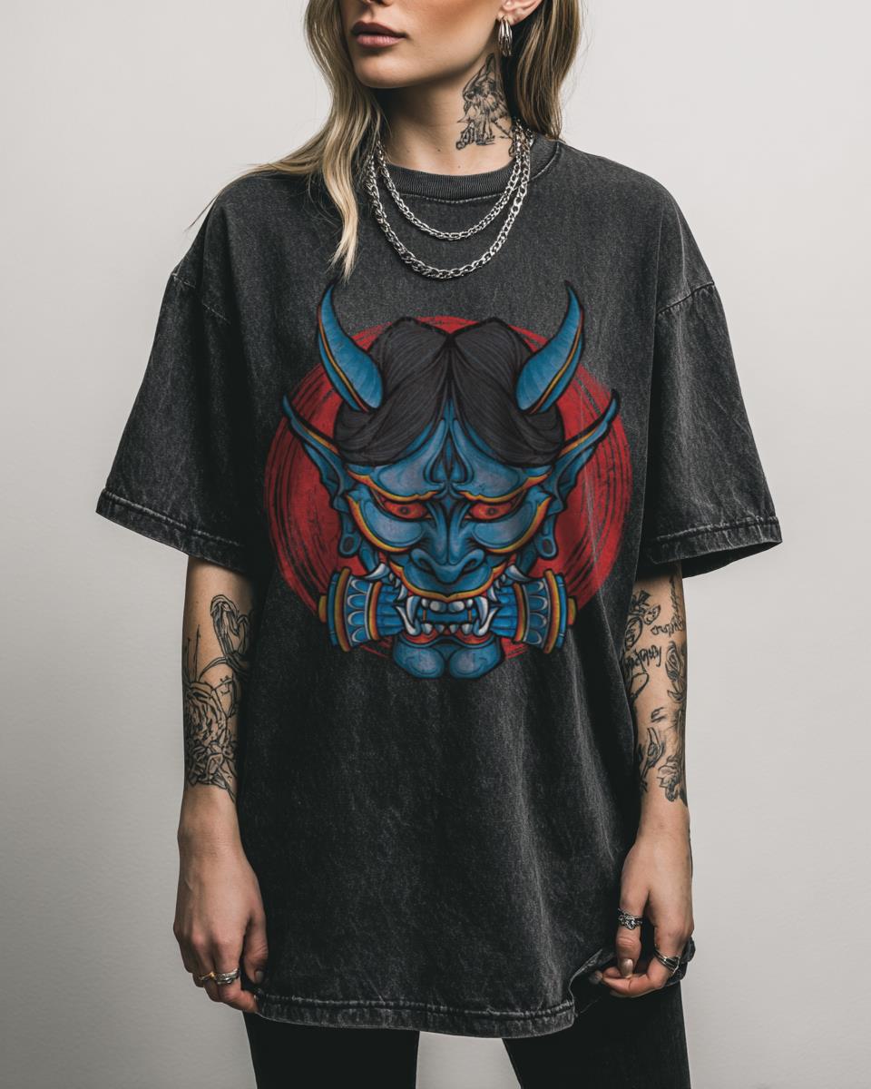 Fascinated by the fusion of ancient Japanese folklore and futuristic tech? This captivating design features a blue Oni mask with a mecha-inspired twist, blending the fierce spirit of a Japanese demon with samurai and robot aesthetics. Perfect for fans of traditional Japanese art, cyberpunk, and unique tattoo styles. Wear a Masterpiece of Modern Japanese Art!…