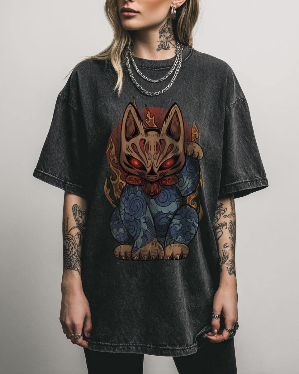 Do you love the blend of cute feline charm with a touch of Japanese folklore and edgy art? Unleash your inner ‘Yakuza Neko’ with this unique design combining a charming cat with elements of Japanese demon (Oni) and fox (Kitsune) folklore. Rendered in striking dotwork style with delicate cherry blossoms, this tee is perfect for…