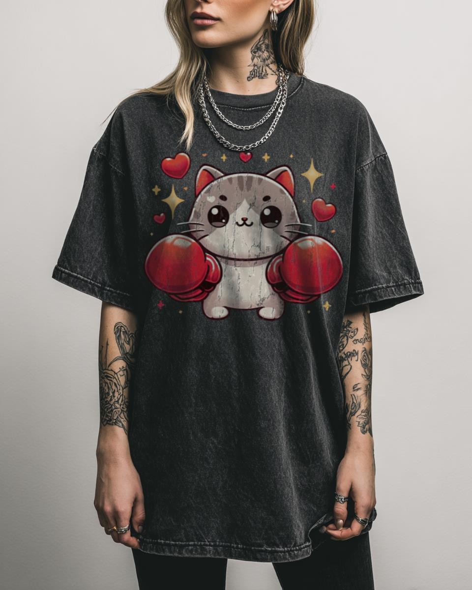 Are you a cat lover who also enjoys a good workout or appreciates motivational art? This adorable t-shirt features a ‘Cute Cat with Boxing Gloves’ in a charming kawaii style, combining cuteness with determination. It’s the perfect design for cat boxing enthusiasts, gym lovers, and anyone who appreciates cute fitness art, making a motivational statement…