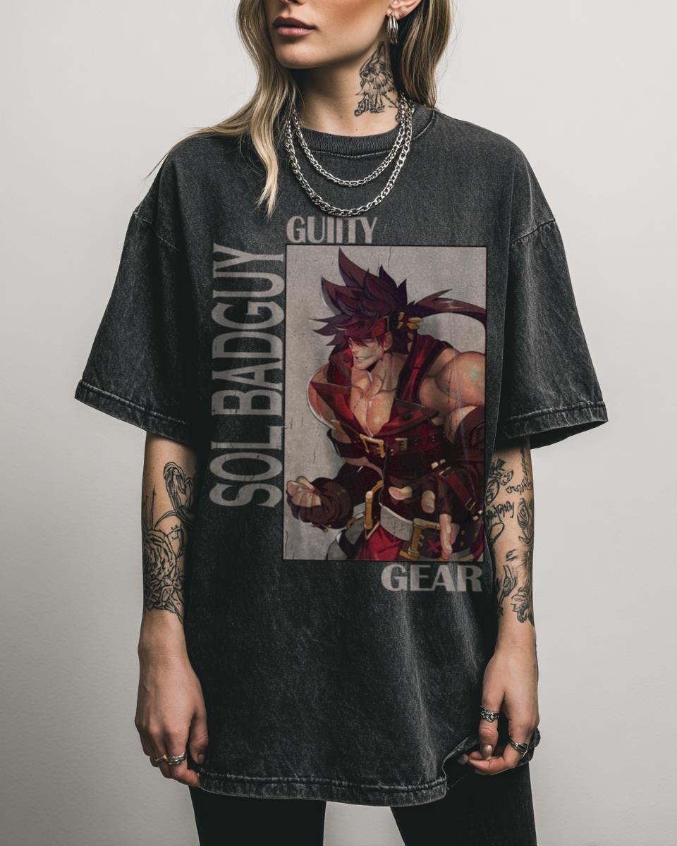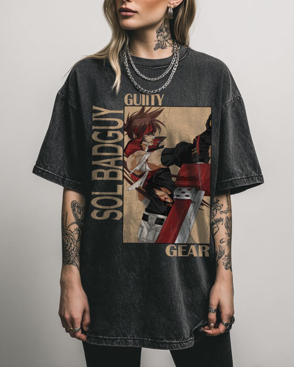 Are you a dedicated player and fan of the Guilty Gear fighting game series? Unleash the fire with this ‘Guilty Gear Sol Badguy’ design! This artwork captures the powerful and iconic Sol Badguy, the main protagonist of the Guilty Gear series. It’s perfect for fighting game enthusiasts, anime fans, and anyone who appreciates dynamic character…