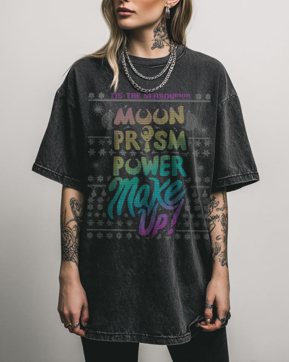 Ready to combine your love for Sailor Moon with festive holiday cheer? Transform your holiday season with this ‘Moon Prism Power MakeUp! Ugly Christmas Sweater’ design, featuring a magical girl twist on a classic festive tradition! This fun graphic blends the iconic Sailor Moon transformation phrase with a playful ugly Christmas sweater pattern, perfect for…