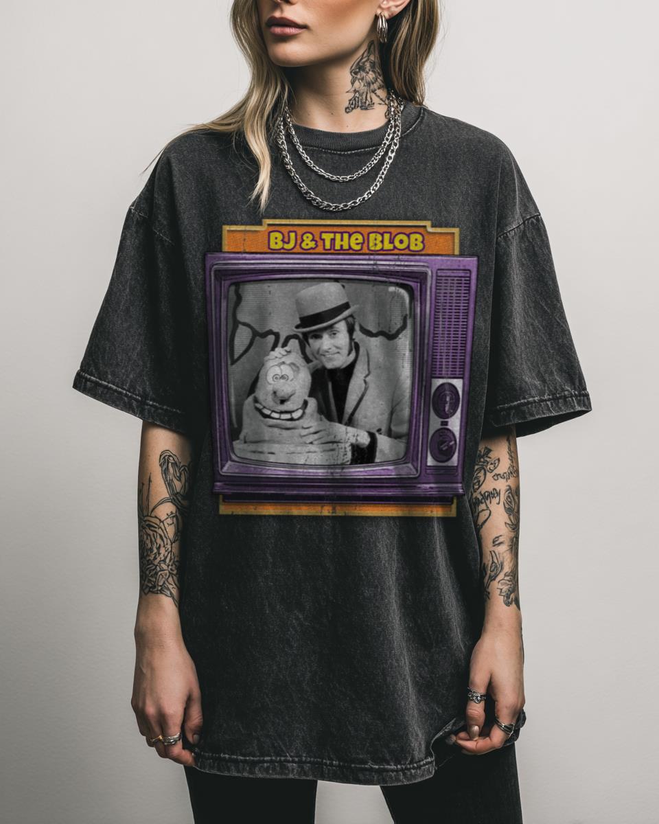Nostalgic for Classic Kids TV Shows? Step back in time to your childhood with this ‘BJ & THE BLOB TV’ T-shirt! This retro design celebrates the beloved classic Chicago kids’ TV show, featuring BJ and the Blob from Cartoon Town. It’s a perfect nostalgic tribute for anyone who grew up with Gigglesnort Hotel and other…