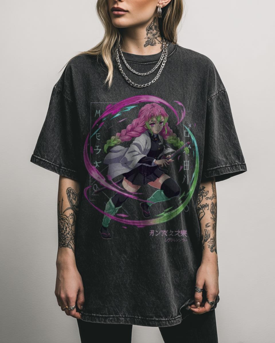 Searching for a Unique Mitsuri Kanroji Demon Slayer T-Shirt? Discover your new favorite anime tee with this Mitsuri Kanroji black acidwash shirt. Showcasing stunning fan art on a comfortable 100% cotton fabric, it’s a stylish way to celebrate the Love Hashira from Demon Slayer. Key Attributes of This Anime Graphic Tee: Features an eye-catching Mitsuri…