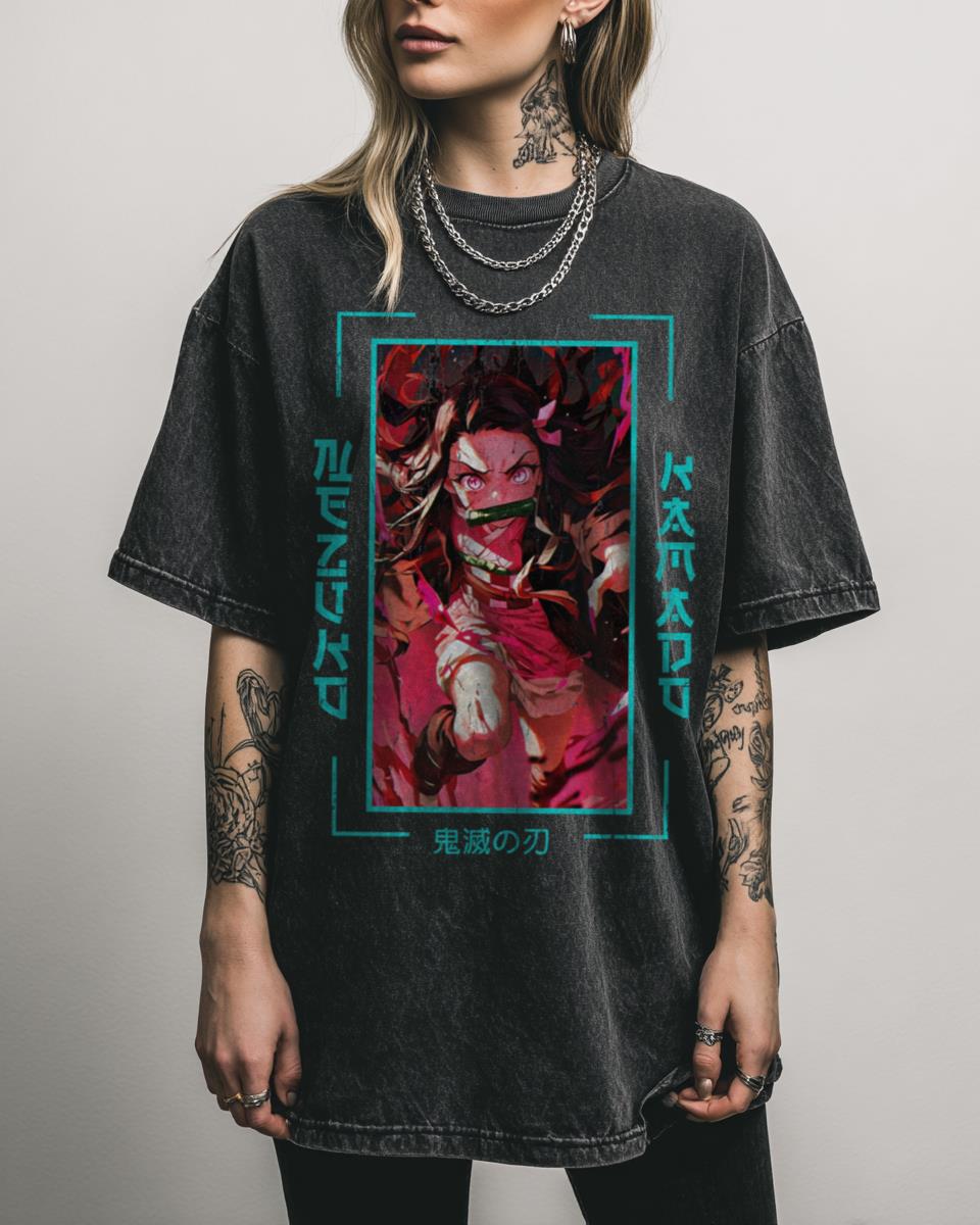 Are you a devoted follower of the iconic Nezuko Kamado from Demon Slayer? Show your unwavering support for the beloved demon girl with this striking Nezuko Kamado T-shirt. This design captures the essence of her enduring spirit and unique charm, making it a must-have for any true fan of the anime and manga series. Celebrate…