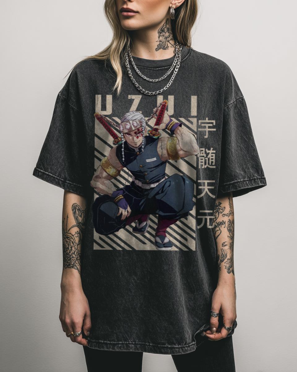 Are you a devoted fan of the flamboyant and flashy Tengen Uzui from Demon Slayer? Show your admiration for the Sound Hashira with this striking Demon Slayer Tengen Uzui T-shirt. This design captures the extravagant personality and unique charm of Tengen, making it a must-have for any true fan of the anime and manga series….