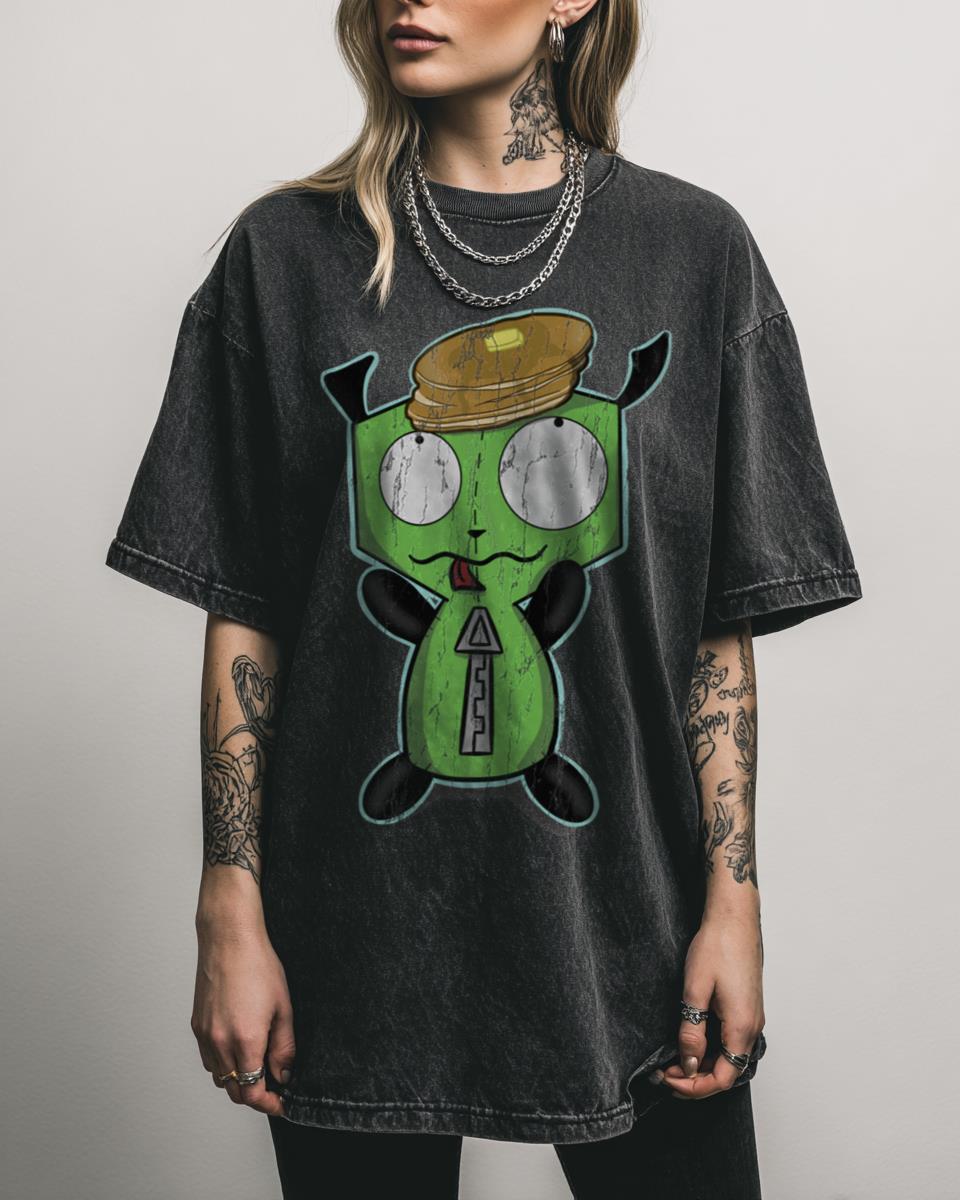 Craving some delicious pancakes with an alien twist? Get your daily dose of wacky with this “Invader Zim GIR Pancakes” T-Shirt! Featuring everyone’s favorite robot, GIR, with his beloved snack. It’s a perfect blend of cartoon nostalgia and quirky humor, making it an instant favorite for fans of the classic Nicktoons show. Why You’ll Love…