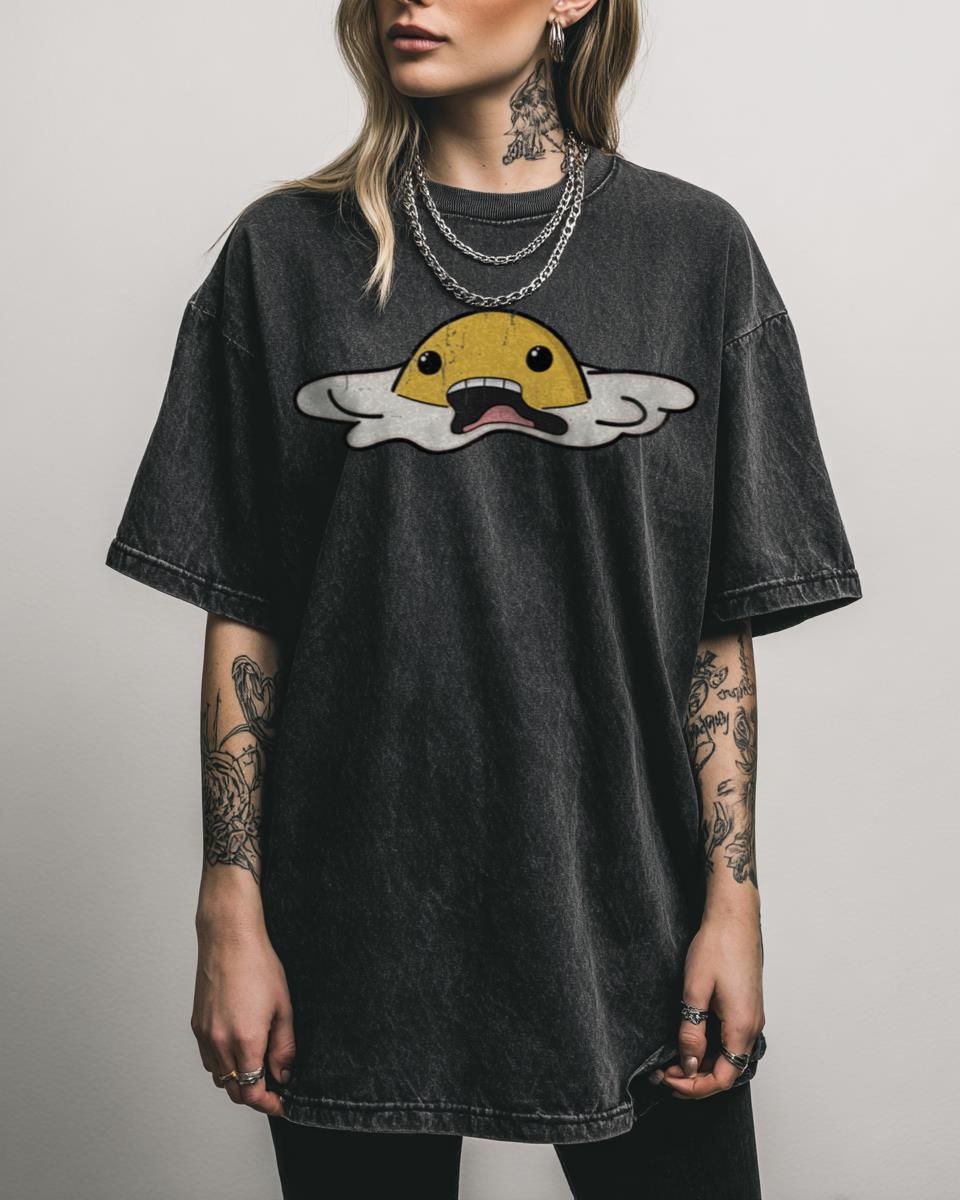 Craving a side of humor with your morning meal? Start your day with a smile with our “Fry the Egg” cartoon graphic! This delightfully quirky design features a fried egg with an expressive, funny face, bringing a playful touch to your wardrobe. It’s the perfect tee for foodies, breakfast lovers, or anyone who enjoys a…