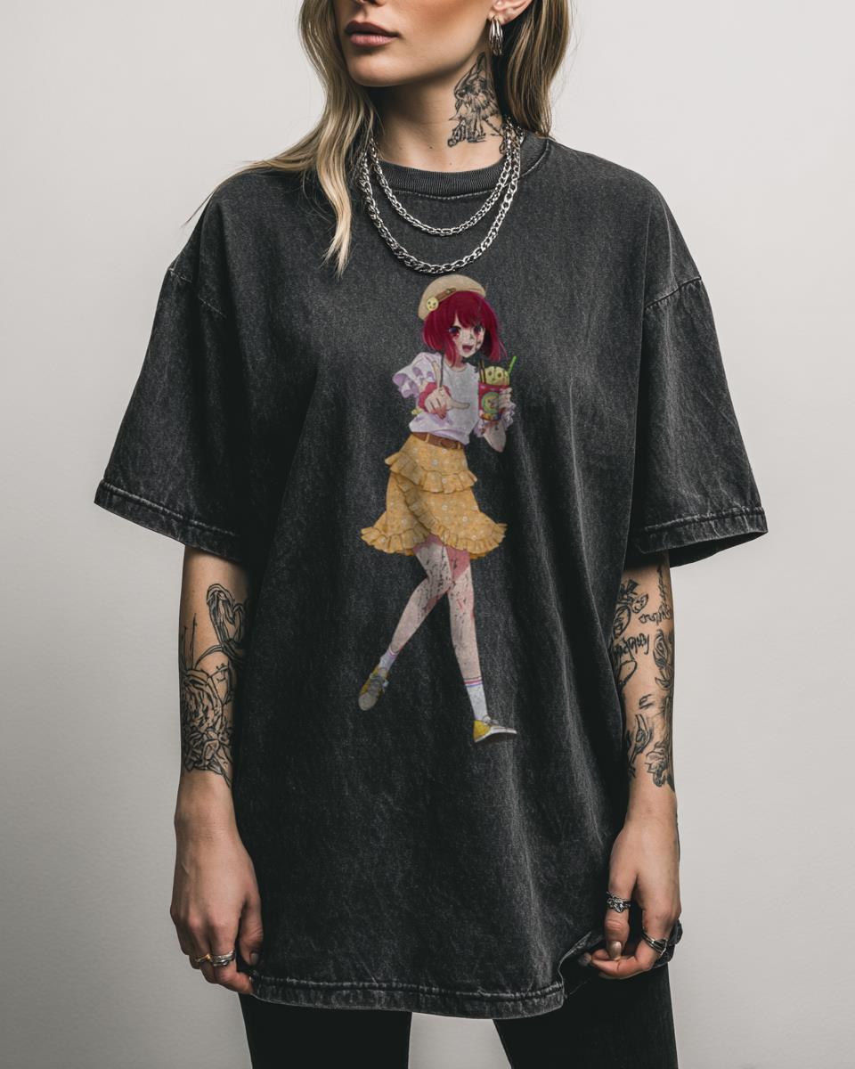 Are you fascinated by the intricate family dynamics and idol world of ‘Oshi no Ko’? Celebrate the iconic Hoshino twins, Aqua and Ruby, along with their legendary mother Ai, with this ‘Oshi no Ko’ T-shirt. This graphic tee is perfect for fans captivated by the dramatic and compelling story of ‘My Star’ and its unique…