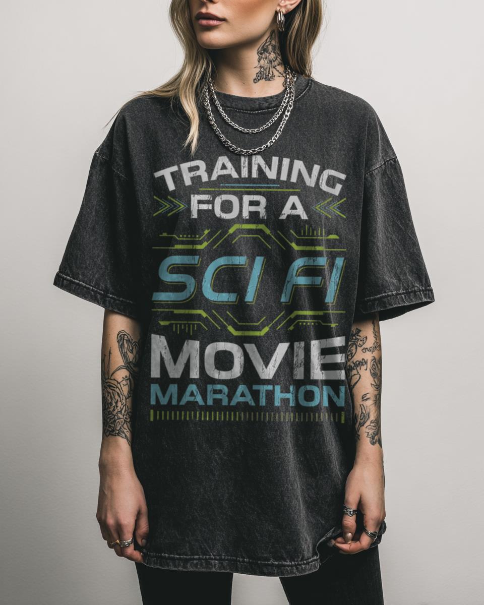 Ready for an epic cinematic journey? Dive into nostalgia with this ‘Training For A Sci Fi Movie Marathon’ design. Featuring a classic retro aesthetic, it’s perfect for anyone preparing to binge-watch their favorite 80s sci-fi classics. Show off your dedication to the genre with this unique and fun graphic. Why This Sci-Fi Fan Tee is…