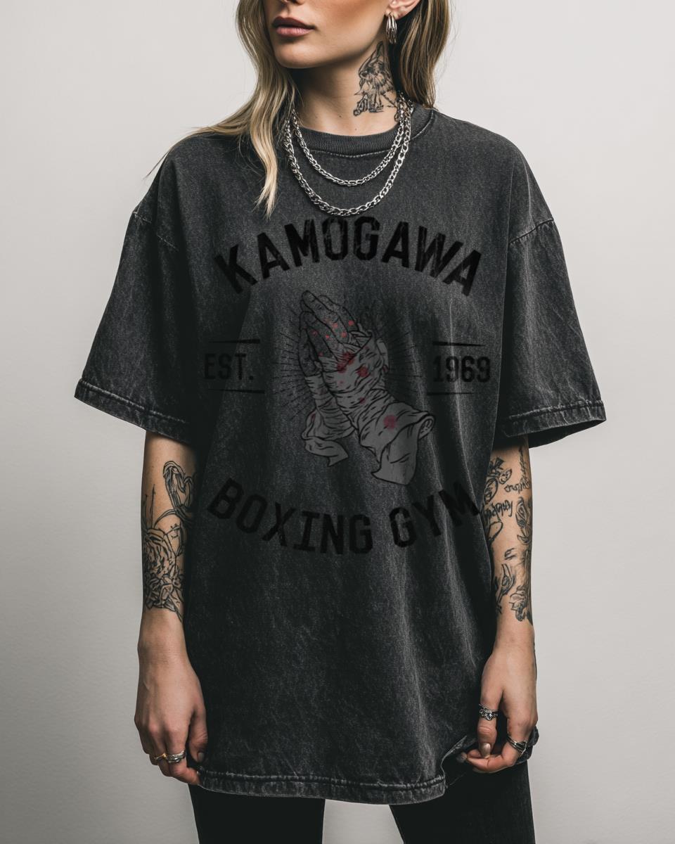 Are you driven by the spirit of a true fighter and the heart of a champion? Show your dedication to the sweet science with this Kamogawa Boxing Gym Praying Hands T-shirt, inspired by the legendary “Hajime No Ippo” anime. This design embodies the discipline, hard work, and determination of the boxing world, perfect for fans…