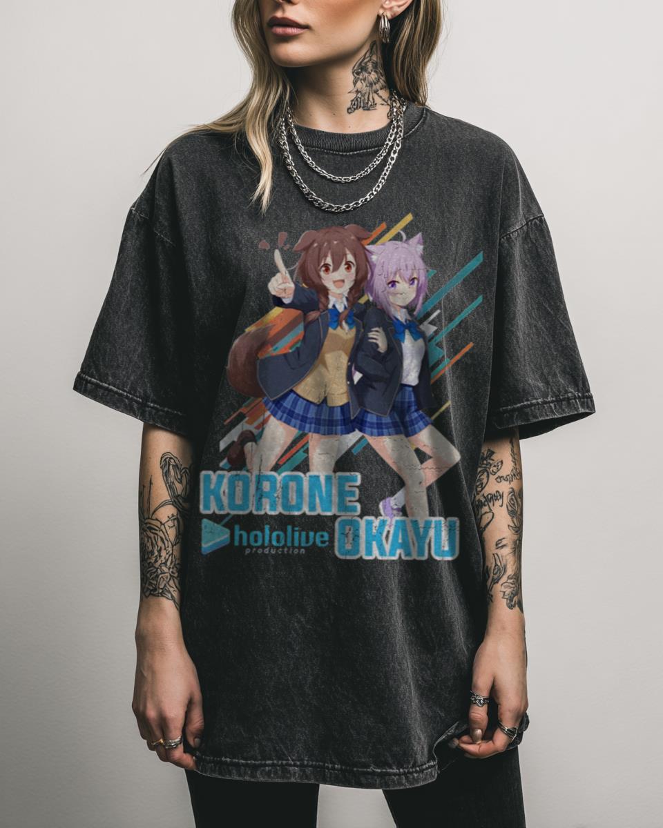 Can’t get enough of the dynamic duo from Hololive JP? Show your love for Inugami Korone and Nekomata Okayu with this adorable ‘Hololive – Inugami Korone Nekomata Okayu 2’ design! Featuring the beloved virtual YouTubers in a cute anime style, this graphic is perfect for fans of Hololive Production and Japanese VTubers. A must-have for…