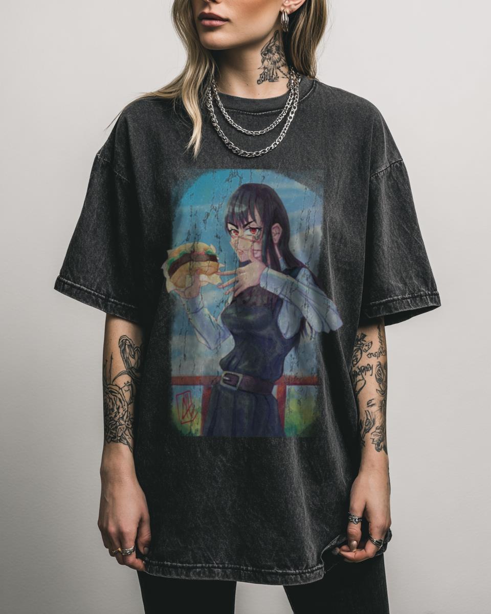 Why This Yoru (Burger) Chainsaw Man T-Shirt is a Fan Favorite? Indulge in a unique piece of anime humor with this Yoru (Burger) Chainsaw Man T-shirt. Featuring a clever fan-created graphic of Yoru, the War Devil, with a burger twist, this black acidwash tee is a must-have for Chainsaw Man enthusiasts who appreciate a good…