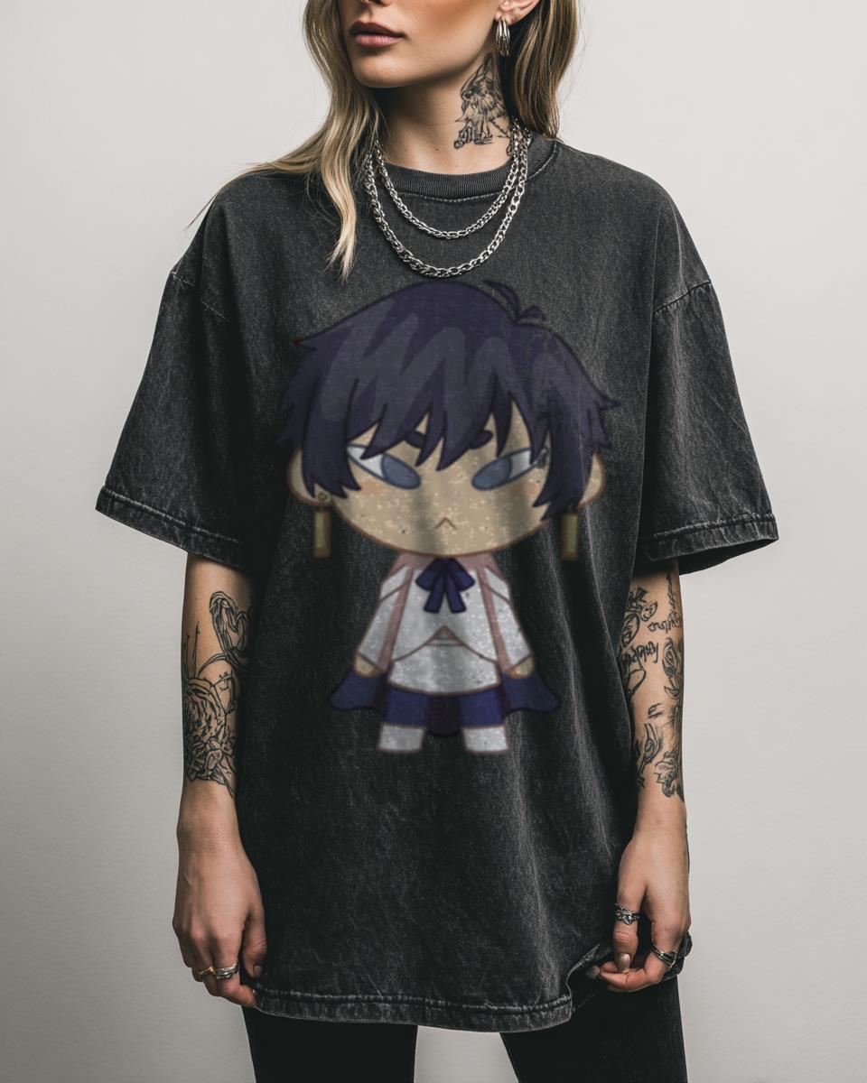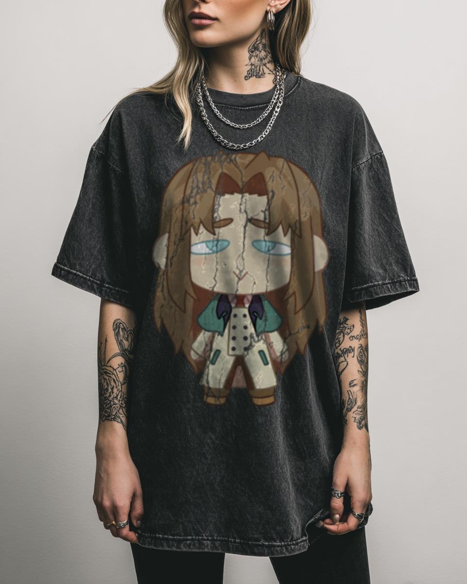 Looking for a charming tribute to one of anime’s most lovable giants? Say hello to “Itty Bitty Milly,” an incredibly cute chibi version of Milly Thompson from the legendary “Trigun” series. This kawaii graphic tee perfectly captures Milly’s gentle giant persona in a delightful miniature form, ideal for fans of the 1998 classic and the…