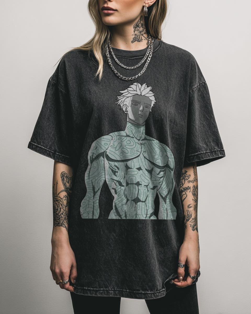 Are you a purist when it comes to classic 90s anime and its iconic characters? Relive the legendary adventures of Vash The Stampede with this ‘Gunsmoke’ graphic, a tribute to the beloved Trigun anime and manga series. This design perfectly captures the essence of the Humanoid Typhoon, blending Japanese animation with a distinctive space western…