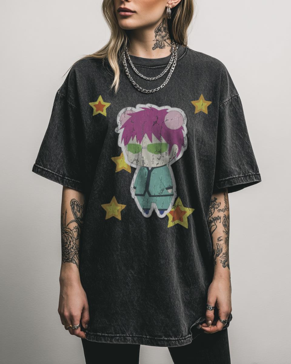 Are you a fan of the psychic antics of Saiki K? This adorable graphic tee features a cute illustration of Saiki K surrounded by stars, capturing the charming and quirky essence of ‘The Disastrous Life of Saiki K’. It’s a perfect choice for anime lovers, manga readers, or anyone who enjoys cute and funny Japanese…