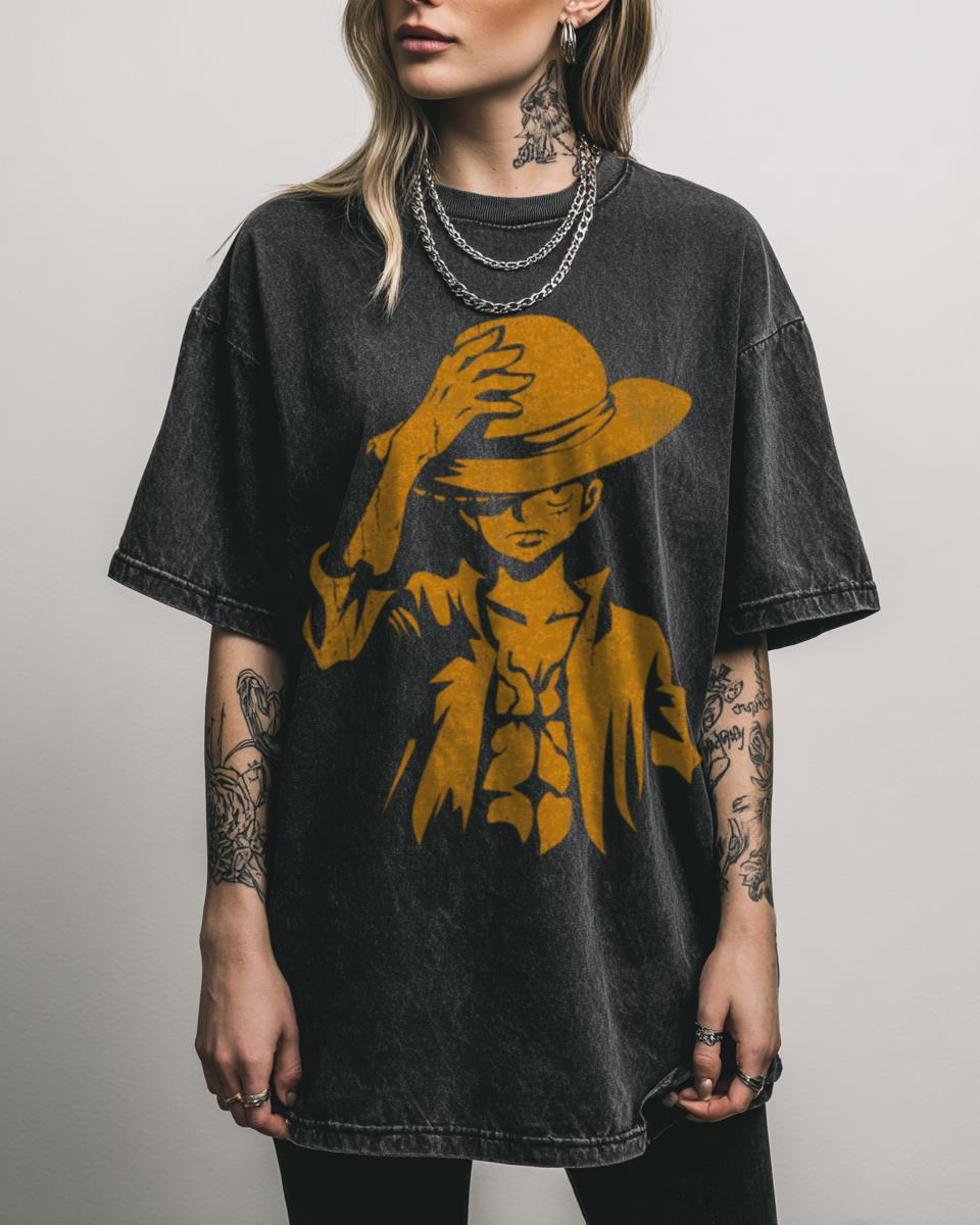 Ready to set sail on the Grand Line with the King of the Pirates? Embrace the adventurous spirit of Monkey D. Luffy with this stylish vector art design! Featuring the iconic captain of the Straw Hat Pirates in a clean, minimalist illustration with a touch of gold, this tee is perfect for One Piece fans…