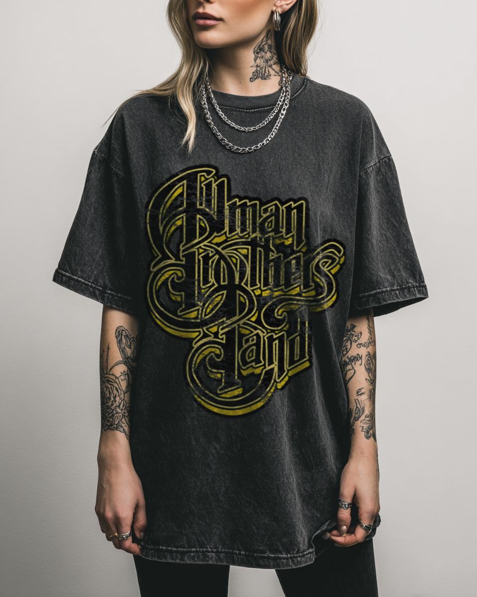 What Makes This Allman Brothers Band T-Shirt Iconic? Celebrate the legends of rock with this **All_man brothers T-shirt**, a classic graphic tee inspired by the iconic band. Crafted from 100% cotton with a black acidwash finish, this shirt features dropped shoulders and a regular fit, blending comfort with a distinctive vintage style for any music…