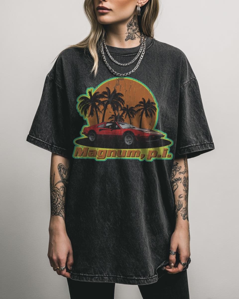 Ready to cruise back to the iconic 80s? Channel your inner Thomas Magnum with this vintage distressed design, celebrating the legendary TV series, Magnum, P.I. Featuring the unmistakable Ferrari 308, this shirt is a nostalgic tribute to classic 80s television, Tom Selleck, and the thrilling adventures of the private investigator in Hawaii. Why You’ll Love…