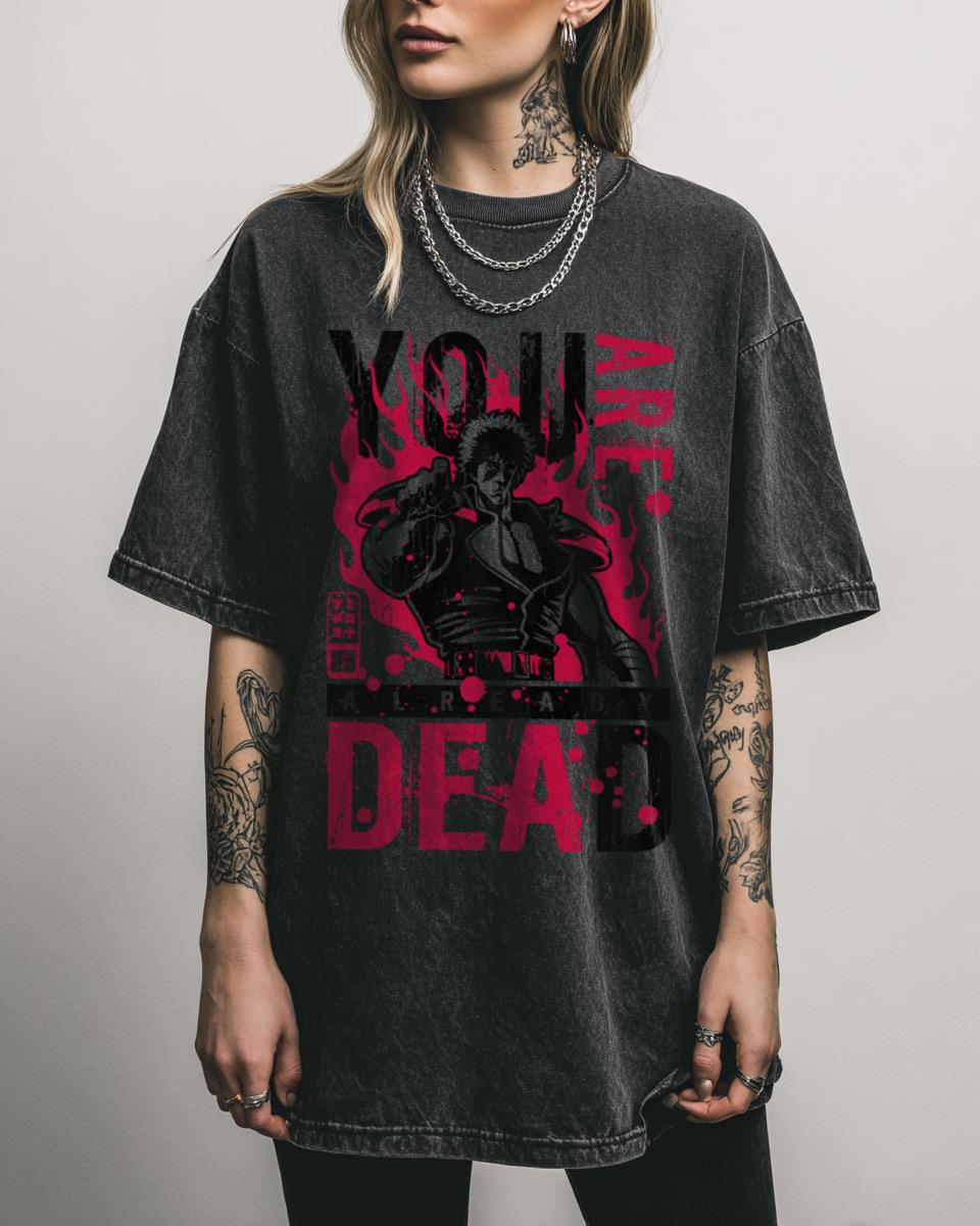 Are you ready to witness the power of Hokuto Shinken? Unleash your inner Kenshiro with this classic ‘You are DEAD’ design from Fist of the North Star! This artwork perfectly captures the intense, retro style of 70s anime and manga. A must-have for fans of Hokuto No Ken, Kenshiro, and the legendary post-apocalyptic martial arts…