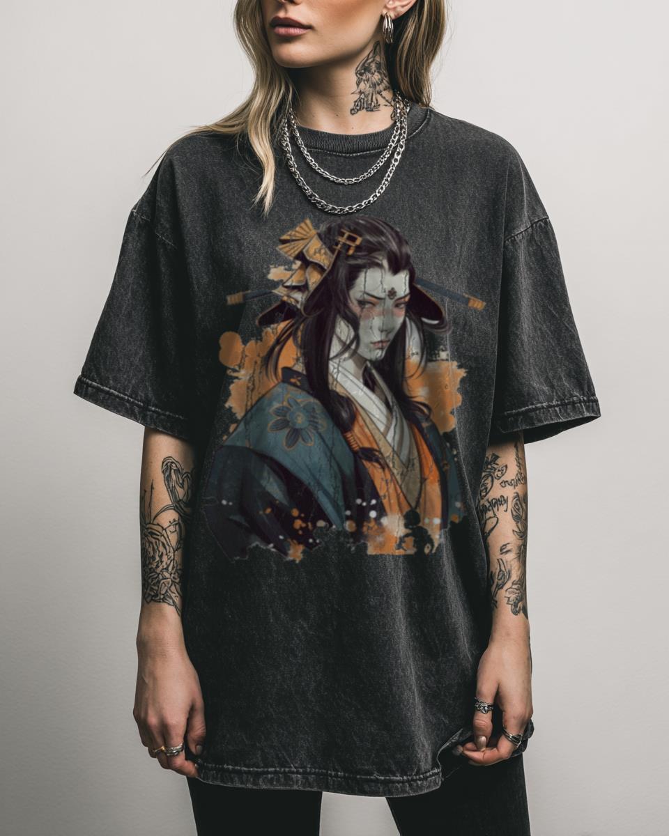 Are you drawn to the edgy aesthetic of 80s and 90s Japanese anime and Yakuza culture? Embrace the fierce style of the underworld with this ‘Yakuza Girl’ graphic tee. Featuring a cool, retro 90s anime illustration of a female character with a katana, this design blends Japanese street culture with samurai strength, perfect for fans…