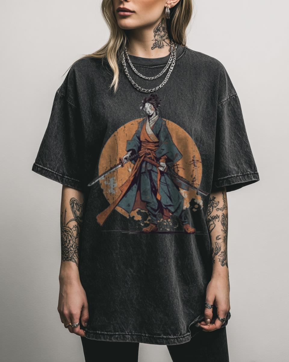 Channel your inner warrior with this fierce 90s anime-style samurai tee! This “90s Anime-Style Female Samurai Warrior” T-shirt features a powerful and elegant design, reminiscent of classic 90s Japanese animation. Perfect for fans of retro anime, Wuxia, and Xianxia genres, and anyone who appreciates strong female characters. This tee captures the spirit of a skilled…