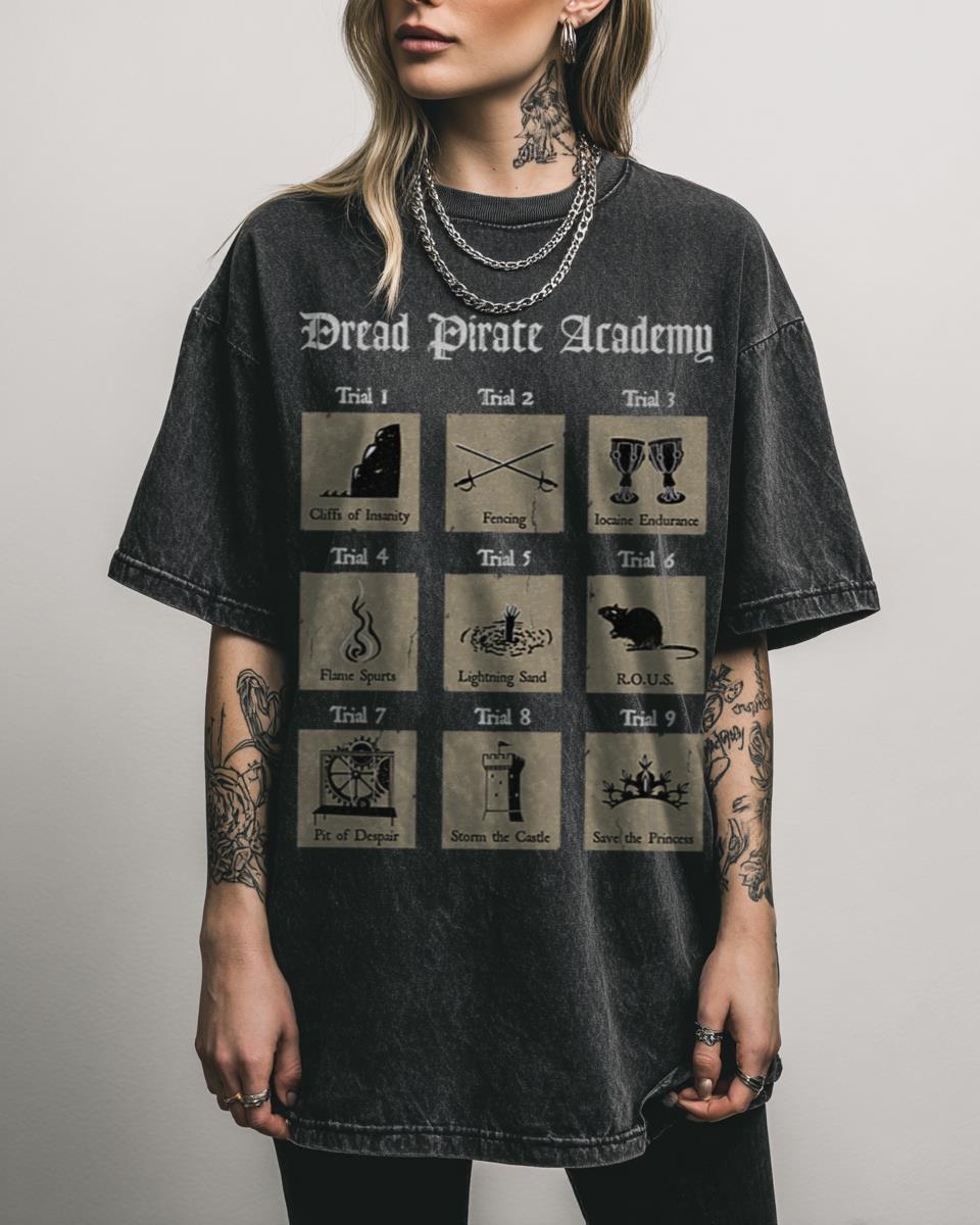 Ever dreamed of mastering the blade and winning true love? Enroll in the Dread Pirate Academy! Join the legendary ranks with this ‘Dread Pirate Academy’ T-shirt, a witty homage to the beloved 80s cult classic film, ‘The Princess Bride’! This design is perfect for fans of Westley, Buttercup, and the iconic Dread Pirate Roberts. With…