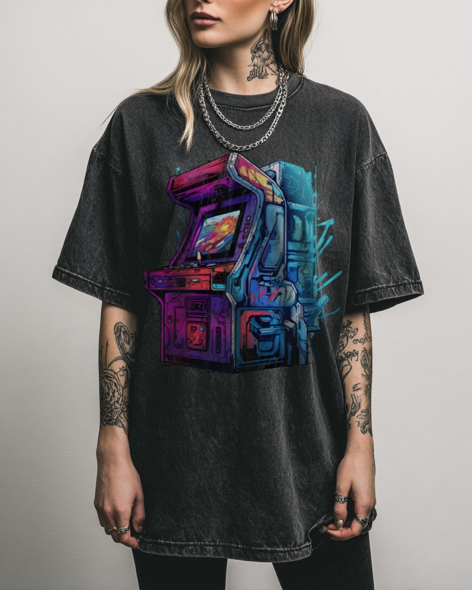 Step into a neon-lit future where retro gaming meets cyberpunk grit? Immerse yourself in the nostalgic yet futuristic world of gaming with this unique design featuring a Cyberpunk Video Game Arcade Cabinet. Rendered in an anime cartoon style, this graphic is a perfect blend of classic arcade charm and dystopian electronics, ideal for gamers and…